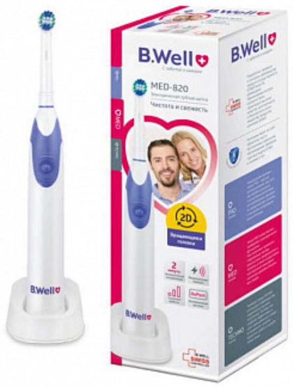 B.Well MED-820- электрическая зубная щетка для гигиены полости рта взрослых. Она обеспечивает эффективное очищение зубов и межзубного пространства, способствует удалению налёта.