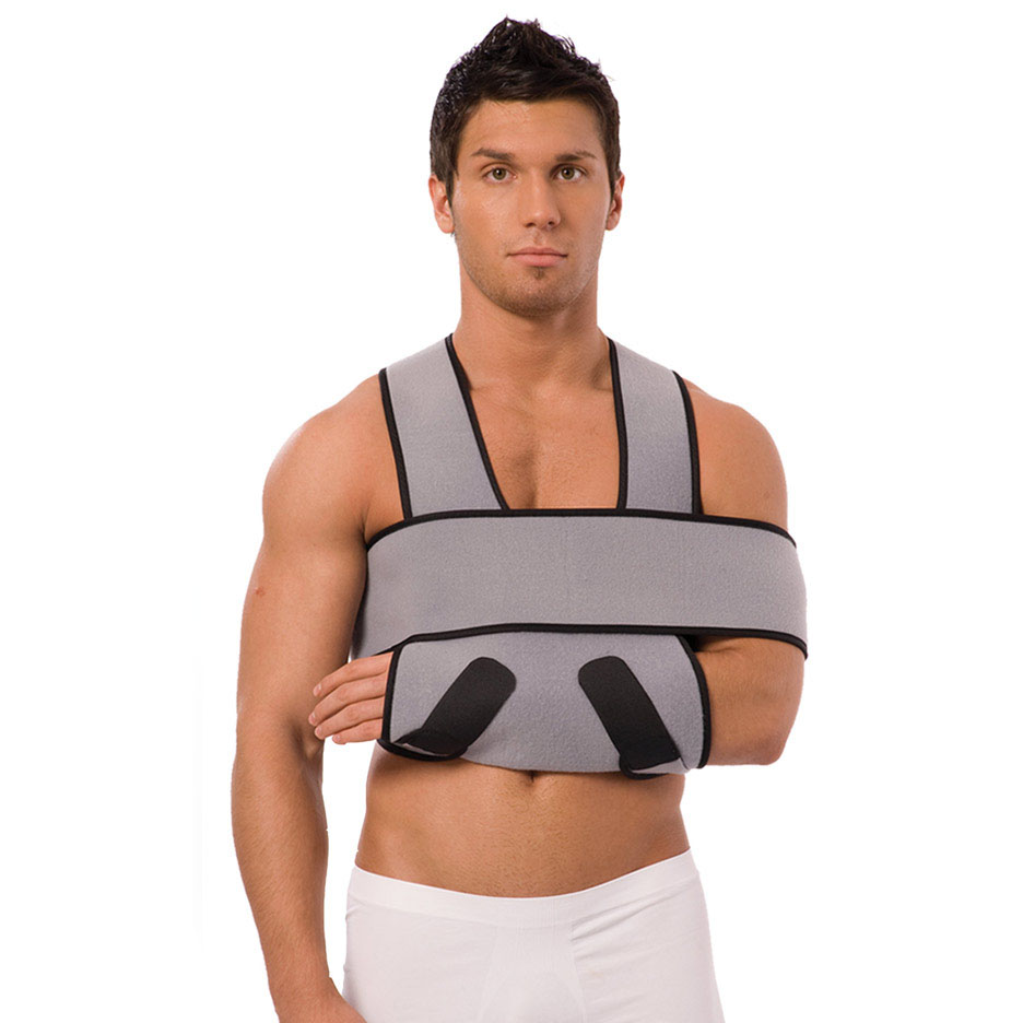 - состоит из муфты для оптимального размещения верхней конечности в функционально выгодном положении и съемного пояса для надежной фиксации верхней конечности к туловищу