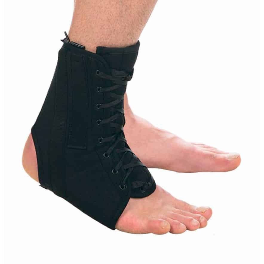 - изготовлен из плотного, нерастяжимого, воздухопроницаемого материала, надежно фиксирующего голеностопный сустав