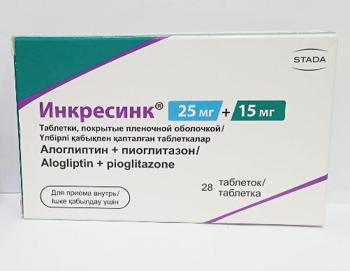 Действующими веществами препарата Инкресинк® являются алоглиптин и пиоглитазон. Этот препарат снижает содержание глюкозы в крови.