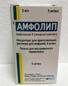 Инструкция по применению Амфолип 5 мг/мл 2 мл 1шт. концентрат для приготовления раствора для инфузий
