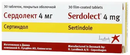 - Активное вещество: сертиндол 4 мг.