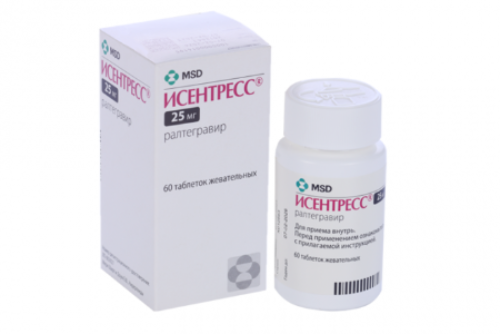 действующее вещество ралтегравир калия 27,16 мг (эквивалентно 25 мг ралтегравира),