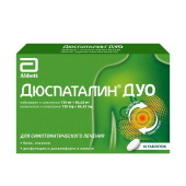 Препарат Дюспаталин® Дуо представляет собой комбинированный препарат, в состав которого входят следующие действующие вещества - мебеверин и симетикон.